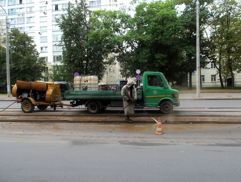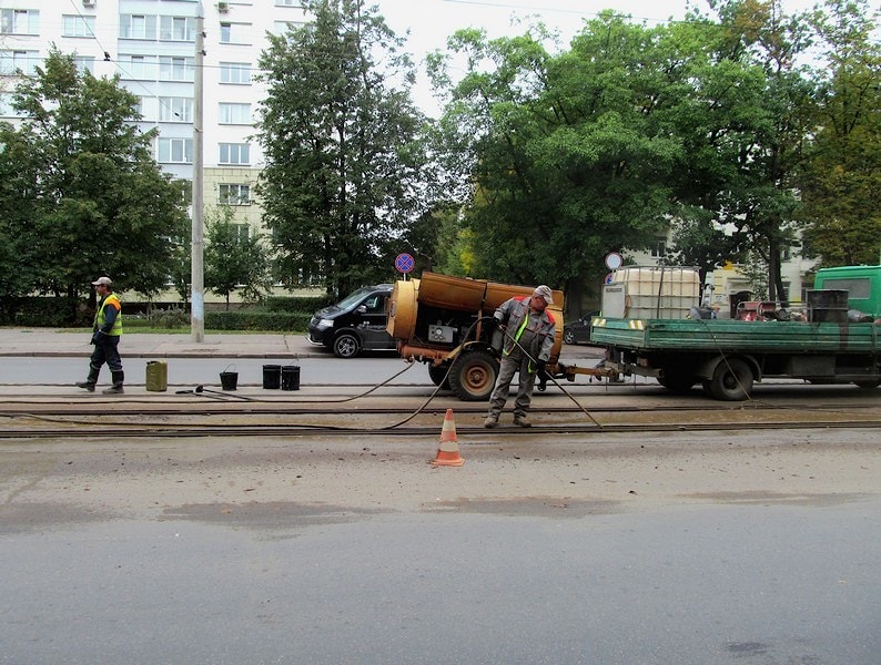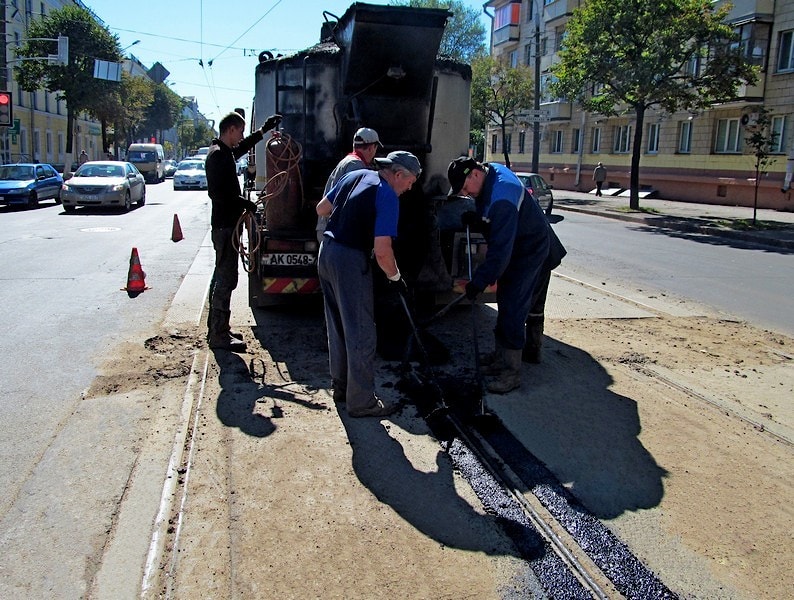 Стоит отметить, что нами впервые в г. Минске применена технология ремонта демпферной зоны трамвайного пути с применение литых полужестких асфальтобетонных смесей.