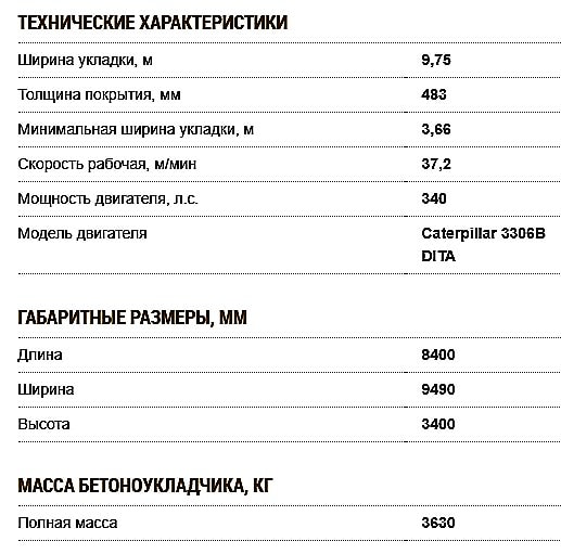 Технические параметры бетоноукладочного комплекса приведены в таблице ниже: