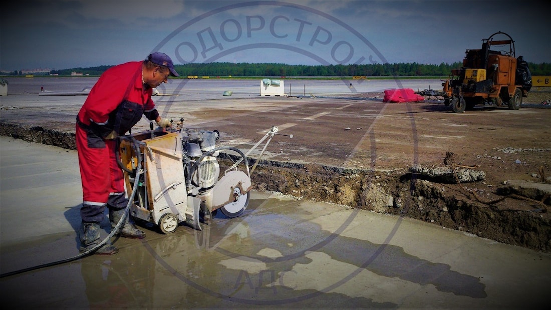 Компания ЗАО «СП АЭРОДОРСТРОЙ» имеет внушительный опыт по устройству деформационных швов сжатия и температурных швов в цементобетонных покрытиях. Шов расширения - это поперечный шов, устроенный на всю толщину дорожной бетонной плиты для обеспечения ее свободного расширения при повышении температуры и влажности.