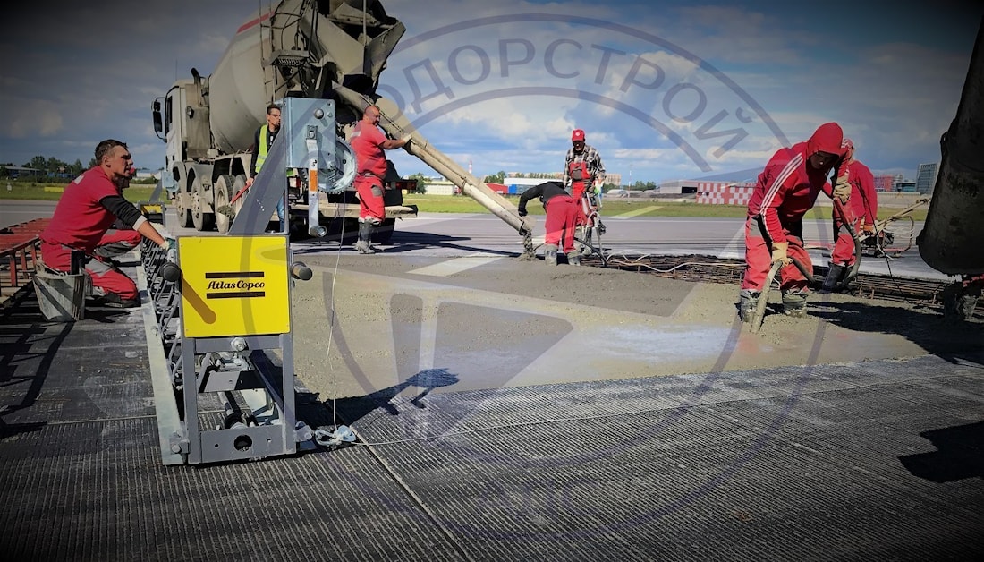 Следовательно выбрав нашу компанию в качестве подрядчика по строительству бетонных покрытий аэродрома, Вы гарантируете себе качественное комплексное выполнение строительно-монтажных работ (от подготовки основания до герметизации деформационных швов) и соблюдение сроков строительства.