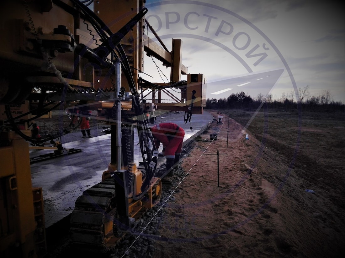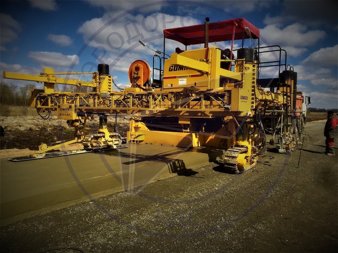 Бетонирование выполнялось при помощи бетоноукладочного комплекса Gomaco Commander III. Протяженность дороги составила порядка 2 км, ширина проезжей части равнялась 7 м, с уширением до 8 м на виражах. Резкие перепады профиля дороги, крутые повороты в плане, виражи (требующие плавного уширения , а затем сужения дорожного полотна) внесли определенную сложность в процесс бетонирования. Однако, опыт и высокий профессионализм сотрудников и применение современного универсального бетоноукладчика Gomaco позволил успешно справиться с этими задачами.