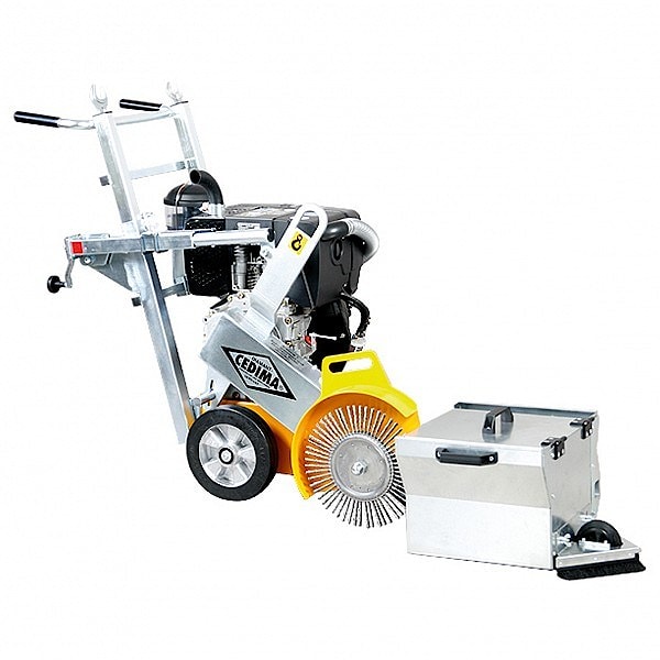 Щёточная машина предназначена для очистки камеры шва от остатков шлама, отходов после нарезки и грязи в новых деформационных швах, а также от остатков старой мастики, шнура, праймера в существующих старых швах. Щёточные машины также используются при ремонте трещин .