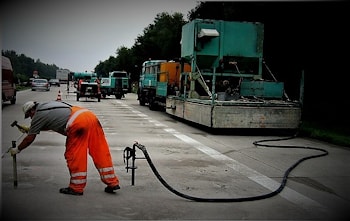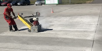 - Поэтапная нарезка на всю глубину покрытия с каждой стороны камеры шва расширения;