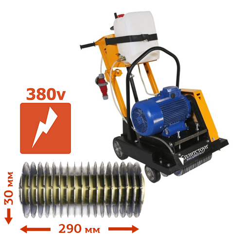 Фрезерная машина MCS -613 используется для удаления бугров, наплывов, излишков образовавшихся на бетонной поверхности. Применение данного агрегата актуально, когда усилий мозаично-шлифовальных машин не хватает и это нерентабельно. Конструкция механизма позволяет снимать значительный слой цементобетона до 30 мм. Фрезеровка осуществляется алмазными дисками диаметром 150 мм. Рабочий вал фрезерной машины предусматривает установку от 17 до 25 таких дисков. Рабочий инструмент обеспечивает ширину обработки до 300 мм за один проход с шагом образовавшихся пазов ( бороздок) 10-15 мм.