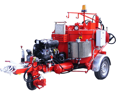Котёл заливщик швов MECO LS 500 оборудован компрессором, электрообогревом шланга и распределительной удочки и мастичным котлом объемом 500 литров, предназначенным для плавления герметика. На котёл установлен надёжный дизельный двигатель Lombardini мощностью 30 кВт. Разогрев битумной мастики происходит за счет работы автоматической системы масляного нагрева с дизельной горелкой. Горелка нагревает термальное масло по контуру бункера котла. Таким образом происходит не прямой нагрев герметика, а косвенный, что не нарушает свойства материала.