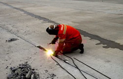 Устранение выбоин, раковин и сколов аэродромных покрытий