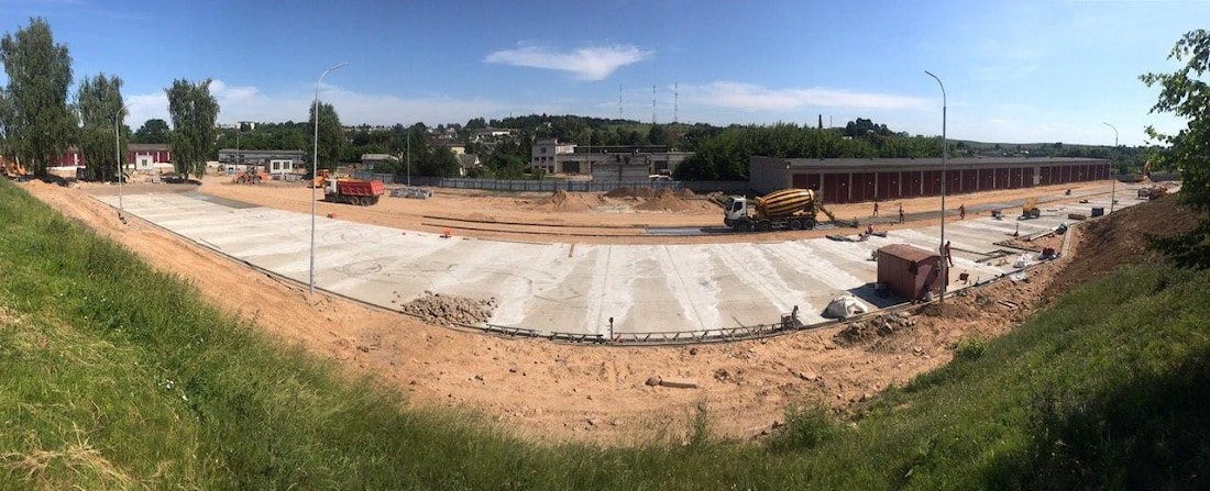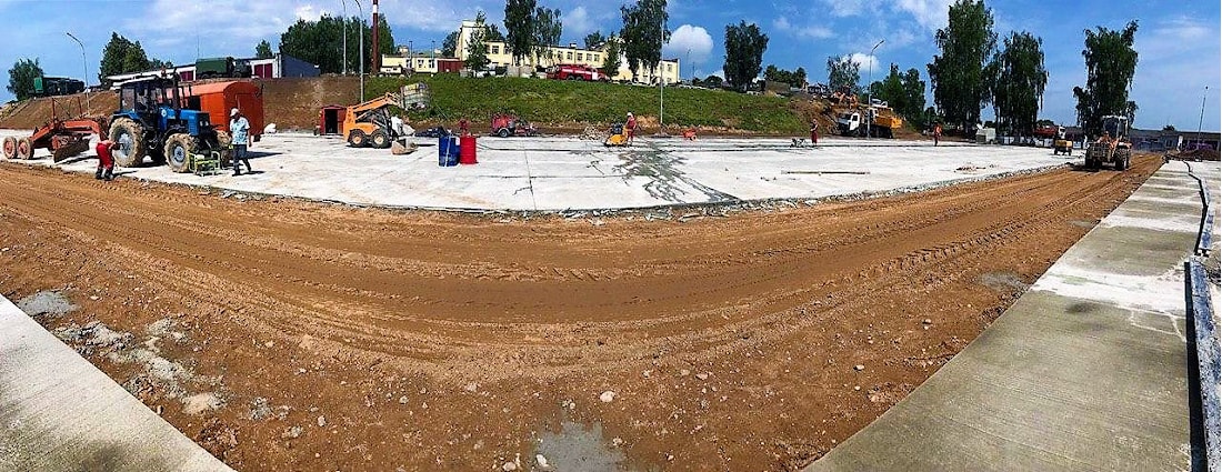Летом 2019 года ЗАО "СП Аэродорстрой" выполняло работы на объекте по капитальному ремонту искусственных покрытий ( дорог, площадок) с водоотводом и модернизаций ливневой канализации, наружного освещения военного городка в городе Воложин.