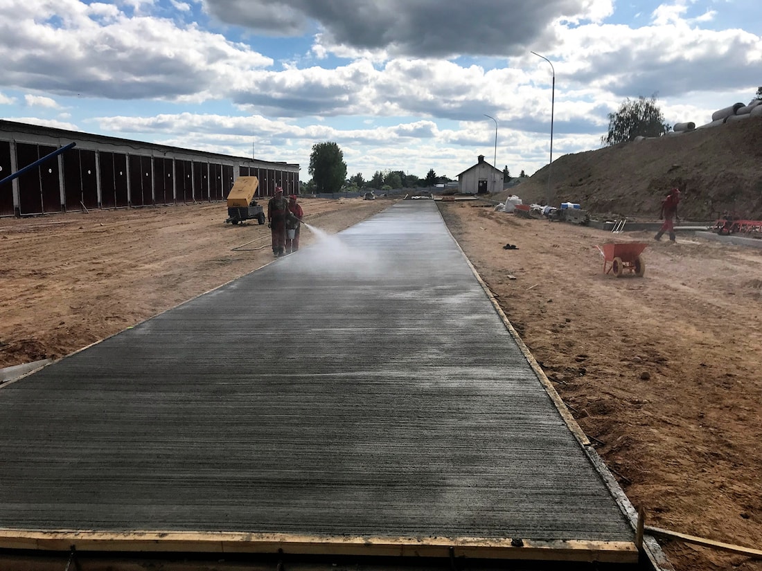 Цементобетонное покрытие после отделки и нанесение текстуры.