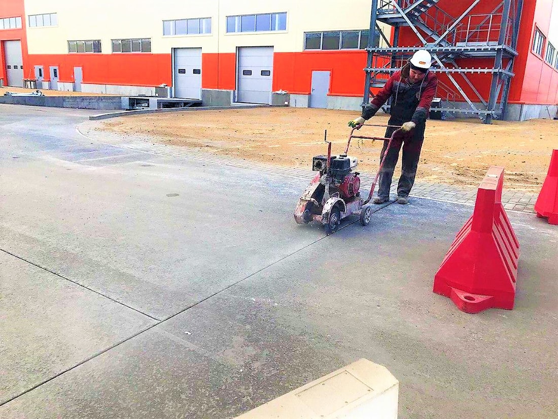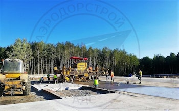 Вокруг территории производственного и сборочного цеха было устроенно новое асфальтобетонное покрытие. Основанием же служили старые железобетонные плиты, поэтому задачей " Аэродорстрой" стало устройству деформационных швов в асфальтобетоне в местах дублирующих швы основания. Это выполнялась с целью недопущения появления отраженных трещин в новом покрытии.