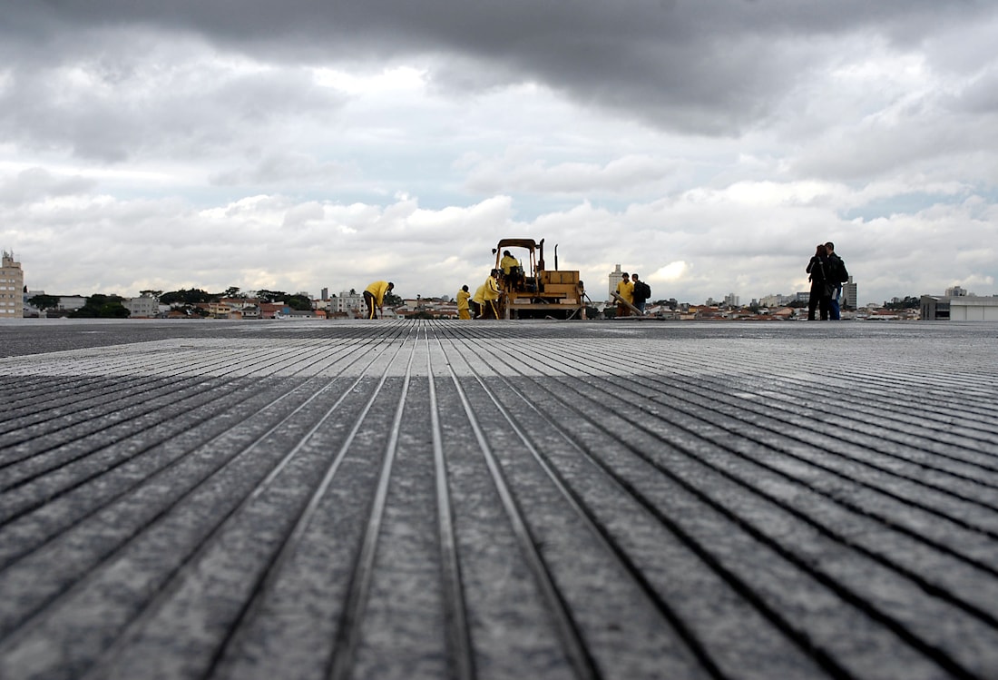 Также существует и вторая технология Grooving - нанесение бороздок и канавок. Это ремонтно-восстановительный процесс актуален для улучшения водоотвода и предупрежения аквапланирования воздушных судов с бетонной поверхности и повышения коэффициента сцепления. Текстура при использовании данной технологии отличается от шлифования , поскольку в итоге мы получаем более глубокую макротекстуру, а шаг расположение прорезанных канавок реже чем при "гриндинге" более 10 мм за счет использования промежуточных шайб.