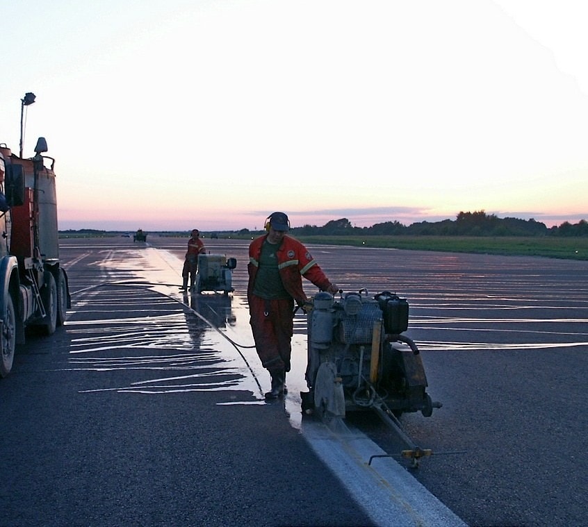 ЗАО «СП АЭРОДОРСТРОЙ» производит замену плит при помощи современных технологий, с применением высокотехнологичных нарезчиков швов фирмы – Cedima, применение технологии реза алмазными дисками позволяет не нарушить структуру бетонного покрытия соседней плиты. Использование цанговых захватов позволяет аккуратно изъять плиты, так как в ряде случаев необходимо заменить инфицированную плиту, находящуюся в окружении работоспособных плит.