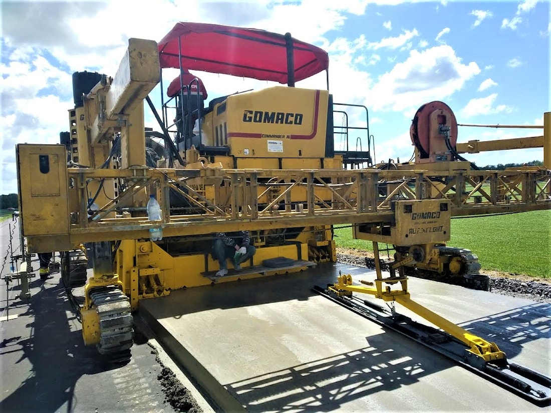 Для аэродромного строительства и строительства дорожных магистралей подойдет мощный бетоноукладчик Gomaco 2800. Конструкция бетоноукладчика позволяют укладывать полосы бетона шириной до 9,75 м и толщиной до 48 см. При проходе по уложенному слою прочная скользящая форма укладчика формирует непрерывную цементобетонную плиту, которая одновременно уплотняется высокочастотными вибраторами На бетоноукладчике установлен 6-цилиндрованный дизельный двигатель Caterpillar. Укладчик оборудован системой закладки арматуры / дюбелей (IDBI). Мы можем предложить вам бетоноукладчик как в базовой комплектации так и с дополнительным оборудованием ( текстурировщиком , установкой спутниковой системы, малыми формами для изготовления бордюров, желобов, барьерных ограждений и пр.).
