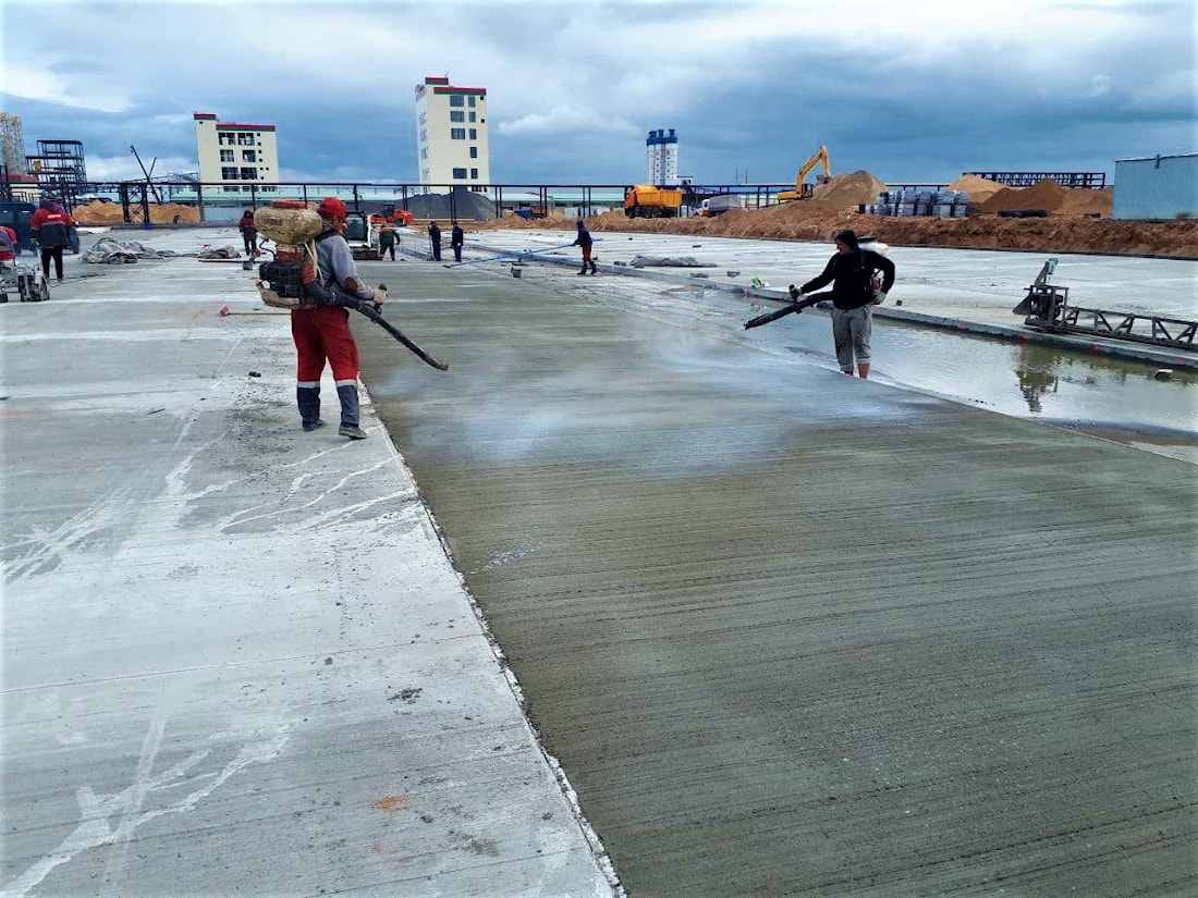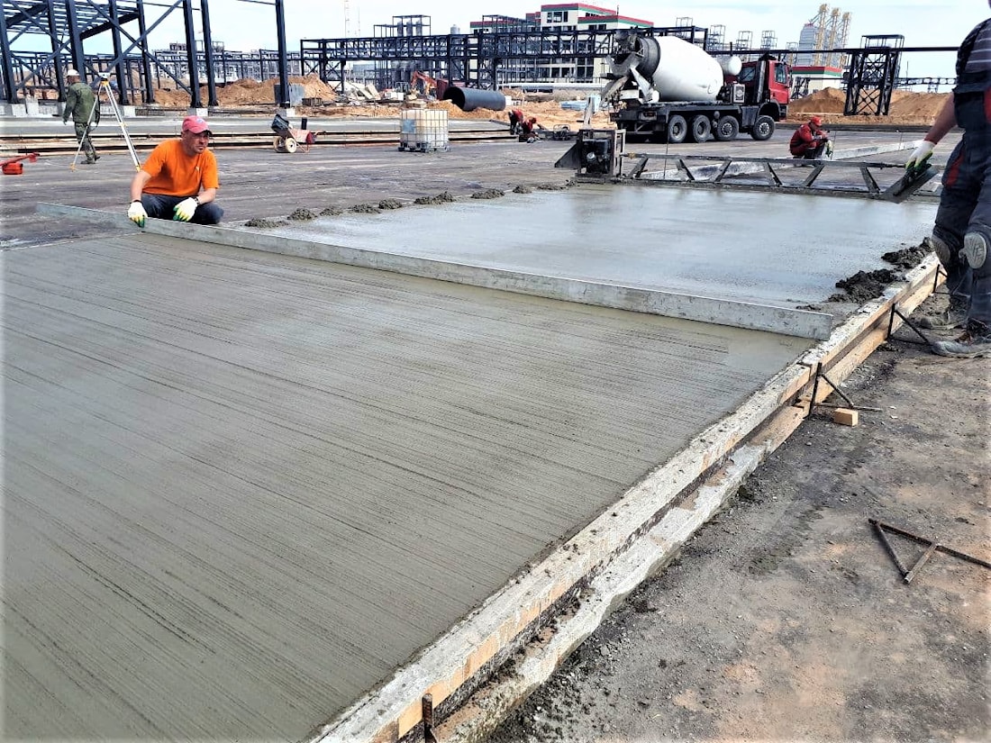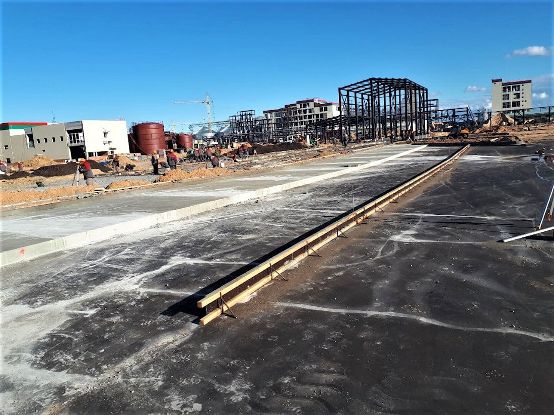 Работы по бетонированию выполнялись с помощью тяжелых секционных виброреек и вальцового укладчика. После завершения бетонных работ, нашими силами был выполнен комплекс работ по устройству деформационных швов сжатия и расширения. Специалисты компании уложились в установленные сроки, соблюдя все строительные нормы и правила.