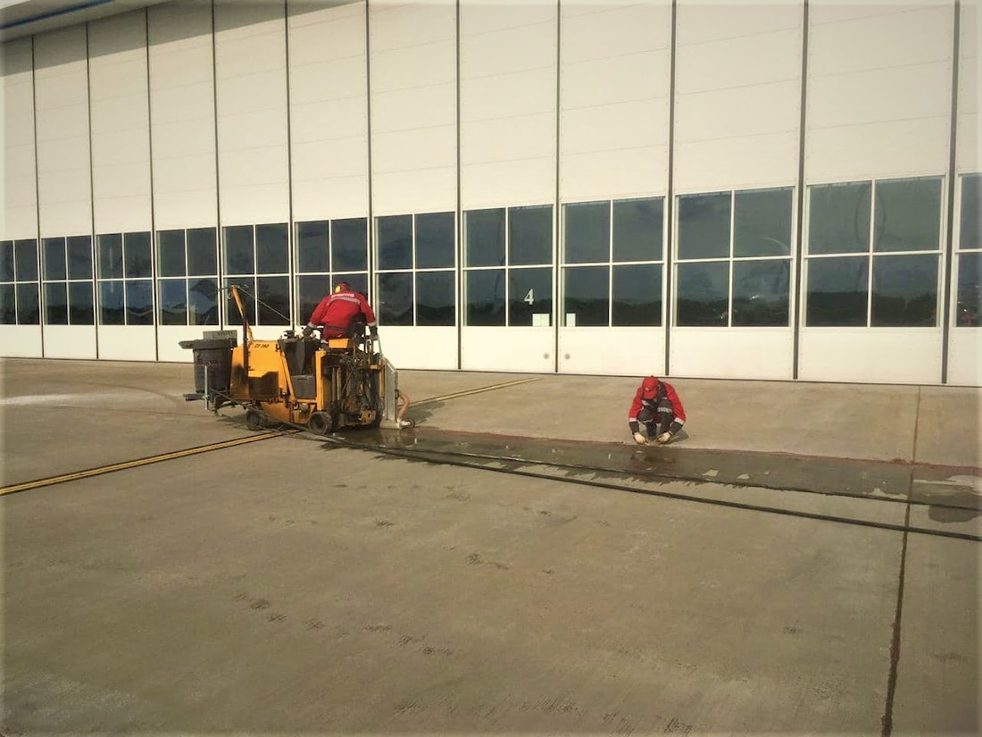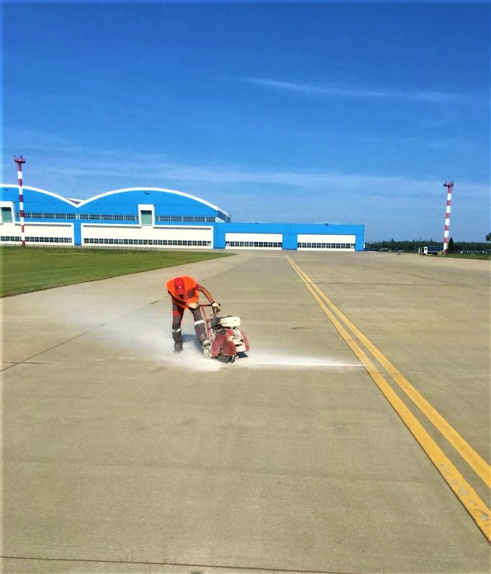 ЗАО "СП Аэродорстрой" в 2020 году выполняло комплекс работ по текущему ремонту перрона и рулежной дорожки, расположенных на территории Национального аэропорта " Минск". Специалисты компании выполнили следующий комплекс ремонтно-восстановительных мероприятий бетонного покрытия: