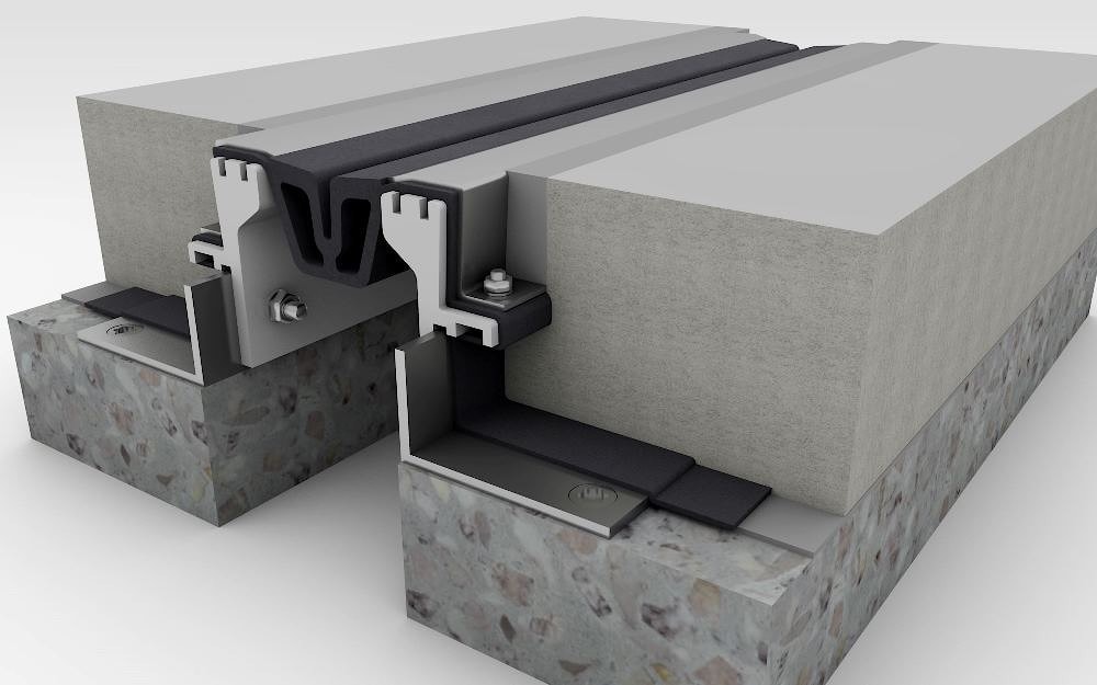 - Вторым наиболее распространённым вариантов является конструкция шва, состоящая из алюминиевых направляющих, в которые плотно вставлен уплотнительный профиль. Такие компенсаторы изготавливаются из термостойкой и морозостойкой резины на основе этилен-пропилен-диенового каучука (EPDM). Такой материал может похвастаться высокой устойчивостью к воздействию ультрафиолета, агрессивных жидкостей (бензин, масла, антиобледиденительные жидкости и пр.) Производители предлагает необходимые типы деформационных швов для надежной эксплуатации паркинга различных размеров с глубиной закладки 30, 50 , 85 и 100 мм, при этом ширина перекрываемого деформационного шва варьируется от 15 до 100 мм. При выходе из строя такие компенсаторы могут быть легко заменены, что очень удобно в период эксплуатации здания.