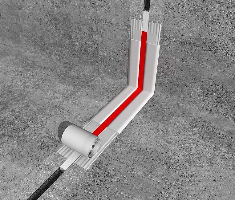 - Использование системы эластичных лент. Принцип работы заключается в наклеивании специальной эластичной ленты на деформационный шов сопряжения двух бетонных конструкций. Отличительной чертой данного способа устройства швов является то, что лента по своим параметрам очень эластичная ( относительная деформация до 600%) и водонепроницаема, а клей очень прочно связывает её с бетонной поверхностью. Таким образом по сути мы просто "заклеиваем" деформационные швы между двумя подвижными элементами и частями здания, и не даём возможность воде проникнуть через шов в помещение.