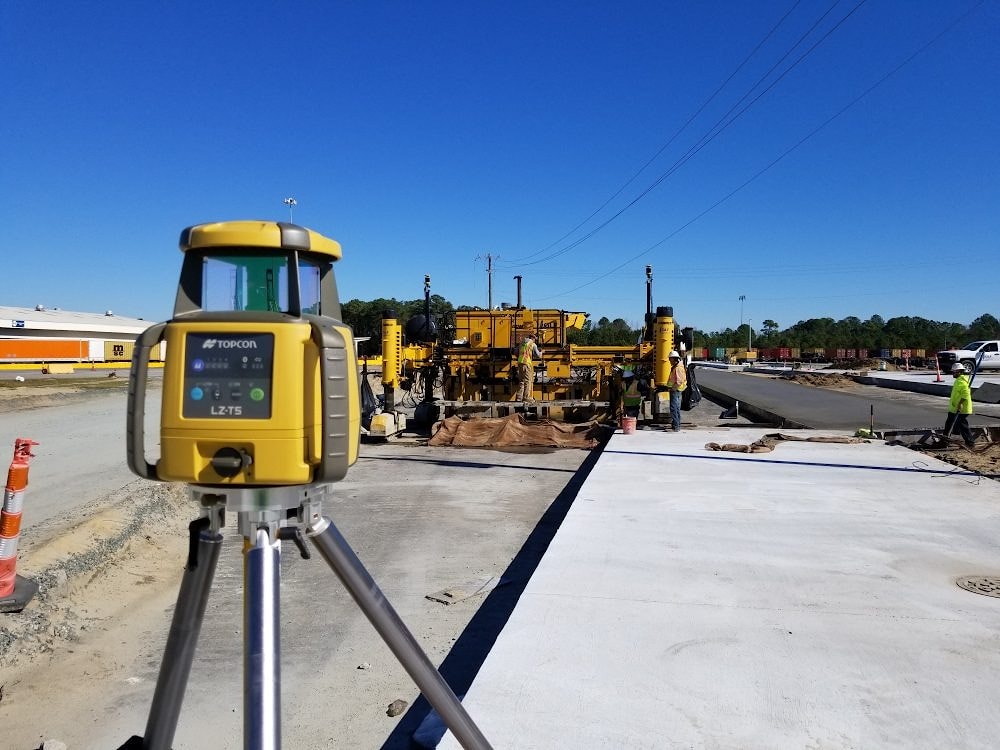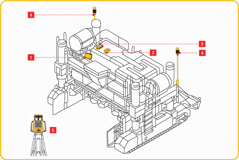 - Датчики лазерной зоны, установленные на мачты бетоноукладчика, для непрерывного определения положения машины;