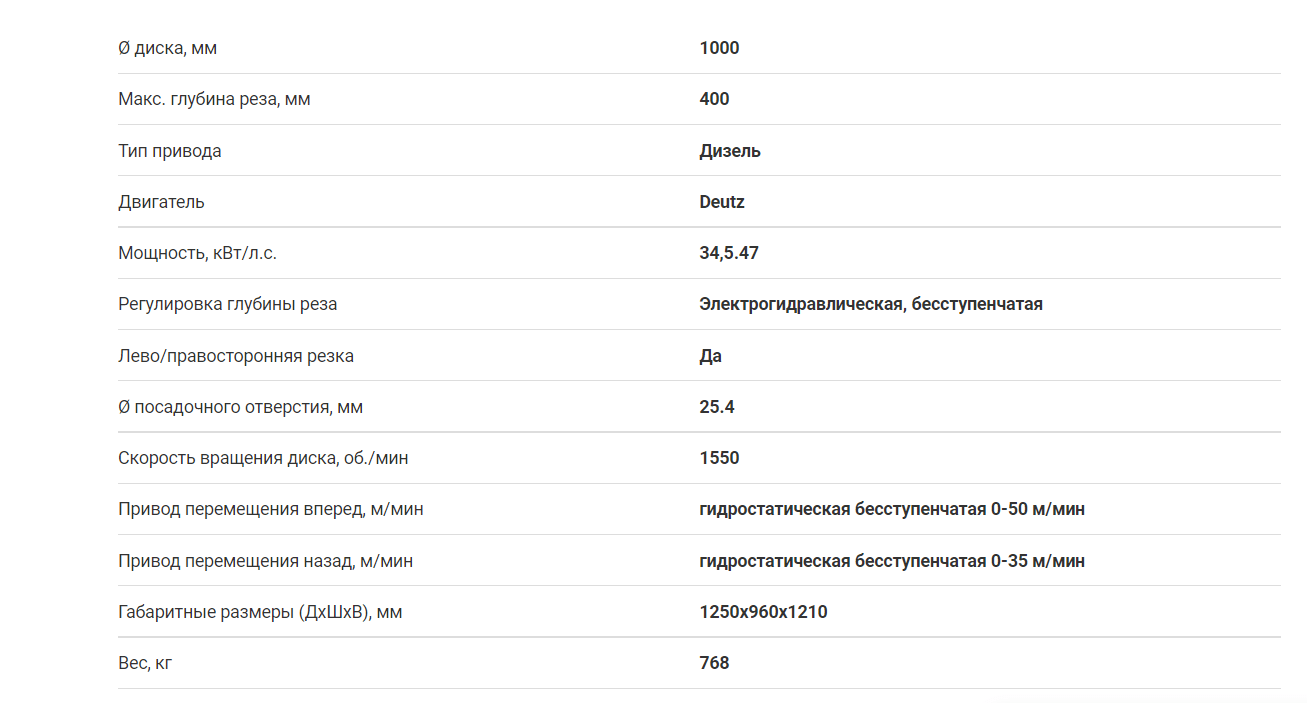 Мы готовы предложить в аренду весь спектр техники необходимой для нарезки всех типов деформационных швов и для выполнения работ по демонтажу цементобетонных покрытий. В частности хотели бы представить Вам нашу новинку - надёжный высокопроизводительный нарезчик швов Lissmac Multicut 500, позволяющий осуществлять нарезку бетона на глубину до 400 мм. С техническим характеристиками данного агрегата можно ознакомиться в таблице ниже: