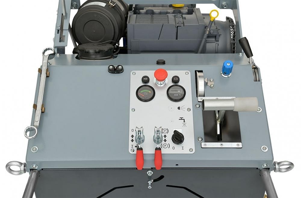 Гидростатический привод, компактная конструкция и сбалансированная равномерно распределенная нагрузка на шасси швонарезчика гарантируют высокую маневренность и хорошую управляемость на площадке. А за счёт того, что центр тяжести машины расположен внизу конструкции агрегата, обеспечивается высокая устойчивость нарезчика и как следствие высокая точность нарезки.