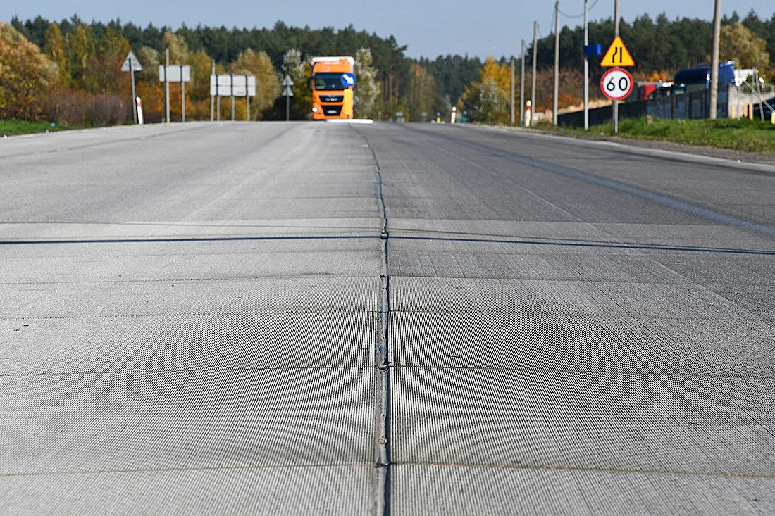 Нарезанные канавки в цементобетонном покрытии автомобильной дороги