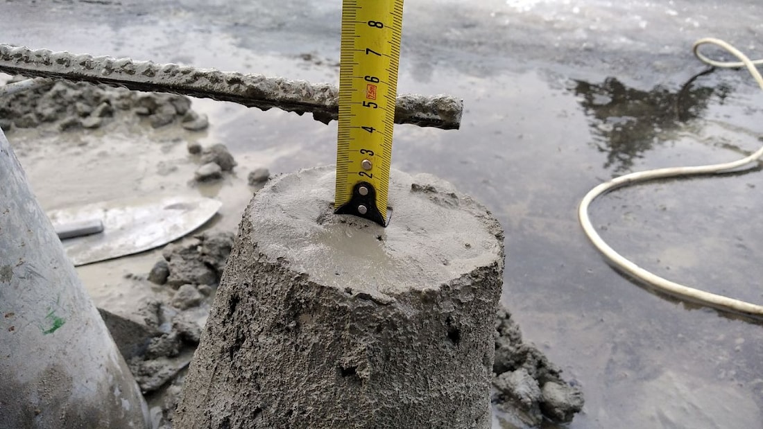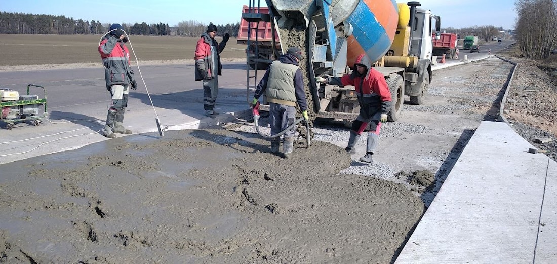 Бетонирование происходило в осенне-зимний период, в связи с чем был выполнен комплекс мер по прогреву бетона и уходу за свежеуложенным покрытием. Укладка бетонной смеси производили в смонтированную опалубку с применением секционных виброреек и трубчатых укладчиков.