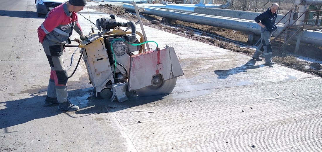 Параллельно с бетонными работами, отдельное звено рабочих выполняло работы по нарезке и герметизации деформационных швов. В итоге было устроено более 7000 м.п. деформационных швов сжатия и расширения, швов сопряжения с асфальтобетонным покрытием и примыкания к бортовому камню.