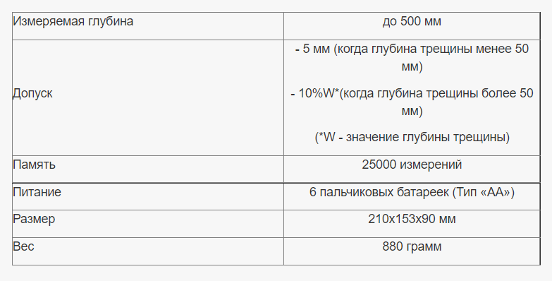 • простой и удобный большой дисплей на английском языке;• прямое цифровое считывание глубины трещины;
