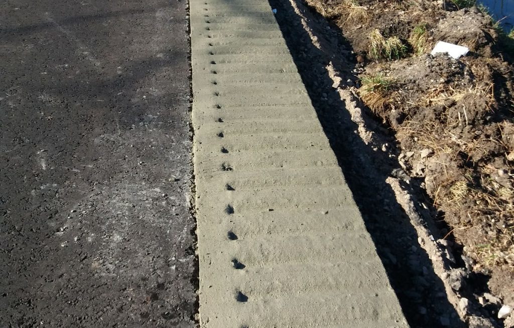 Это не только ведет к небезопасным ситуациям, но и ведет к дополнительному техническому обслуживанию. В Европейском союзе дорожников нашли решение этой проблемы с помощью рифлёного бетонного покрытия. Есть множество вариантов прикромочного бетона. Различные текстуры и возможности этого бетонного покрытия могут способствовать отводу воды. Поверхность прикромочного бетона устраивается с определенной текстурой ( рельефом). Чтобы участник дорожного движения получал сигнал при движении рядом с дорогой. По сути мы получаем шумовую полосу, представляющую собой искусственную неровность , выполненную в виде чередующихся поперечных полос и прочих узоров на поверхности бетонного покрытия, вызывающее вибрацию элементов подвески транспортного средства и увеличение шума качения колес с целью предупреждения водителя о приближении водителя к опасному участку дороги или съезде с полосы движения. Прикромочный бетон, как и все бетонные покрытия, является очень экологичным решением. Он имеет долгий срок службы и минимальный уход за дорожным покрытием.
