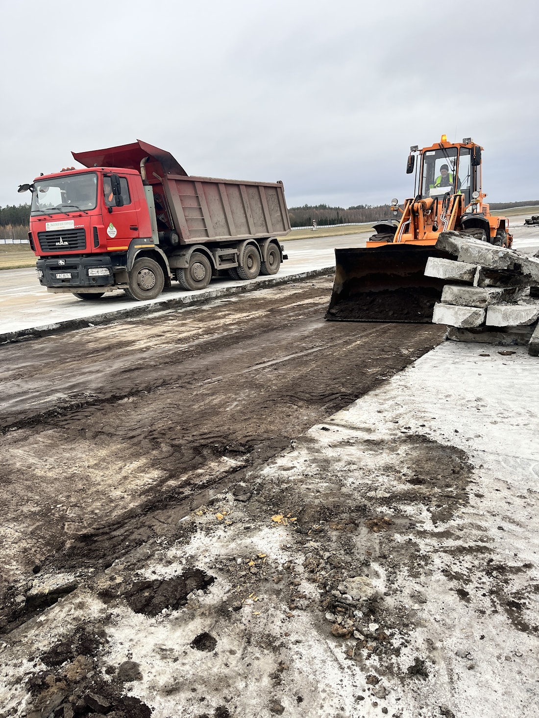 В связи с многочисленными повреждениями аэродромных покрытий, а также необходимостью проведения в кратчайшие сроки восстановительных работ руководство Национального аэропорта Минск обратилось в нашу компанию с просьбой выполнить работы по текущему ремонту (замене плит) покрытий взлётно-посадочной полосы.