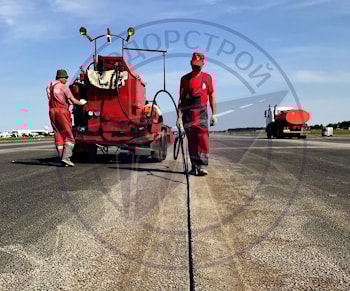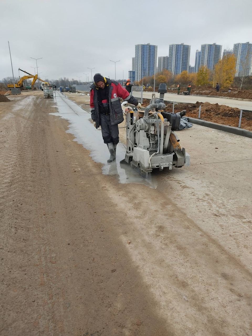 Параллельно с бетонными работами на объекте выполнялся комплекс работ по устройству деформационных швов сжатия, расширения, швов сопряжения с асфальтобетонным покрытием, шов примыкания к бортовому камню, рабочие швы. Для выполнения работ по нарезке швов на объекте были применены собственные высокопроизводительные нарезчики Lissmac, Cedima, Meco. Герметизацию швов выполняли при помощи автономных самоходных котлов заливщиков Meco LS 500 и ЭД 135.
