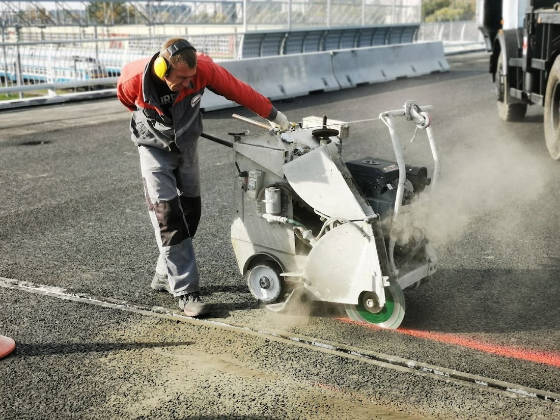 Так на следующий день после укладки ремонтного смеси была произведена нарезка поперечных швов сжатия с шагом 1 м для предотвращения хаотичного трещинообразования.