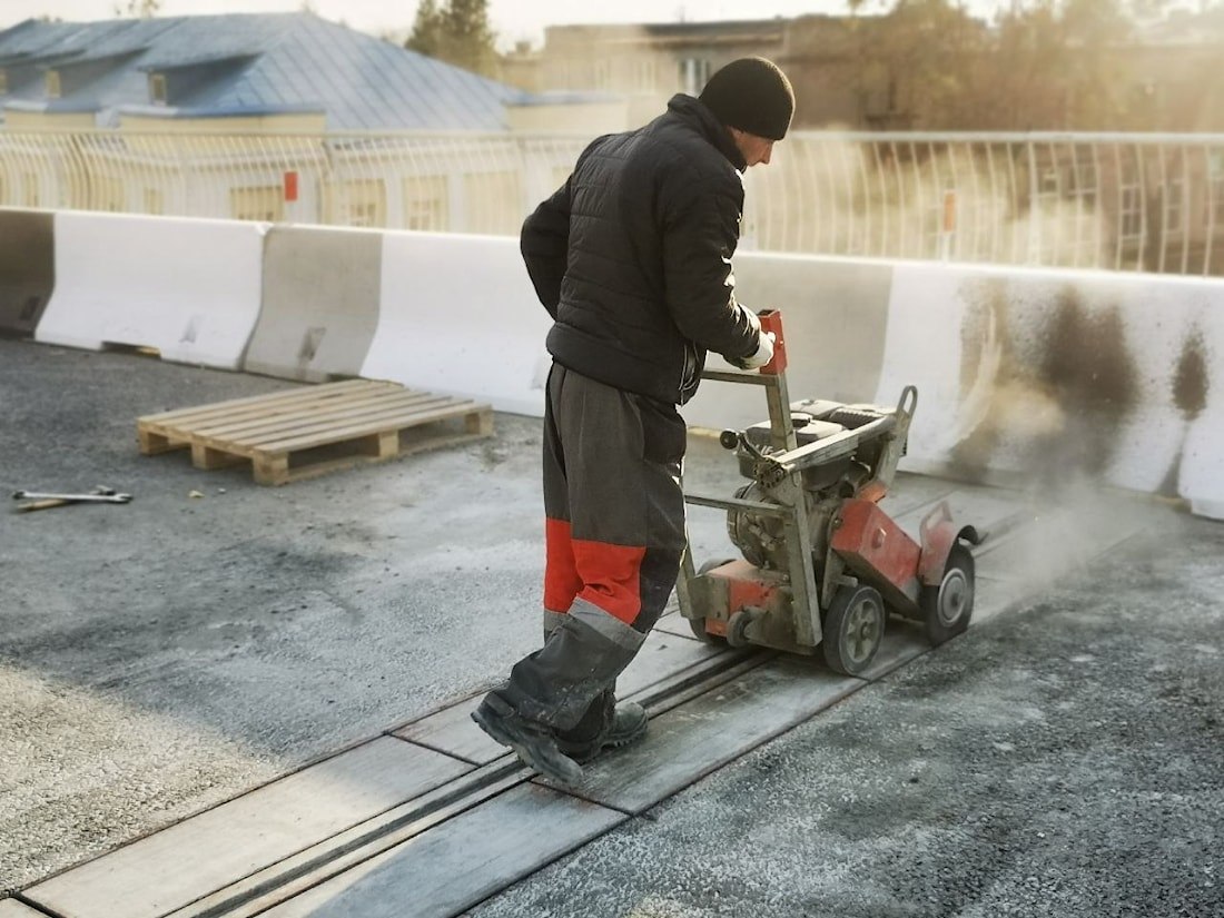 Первым этапом ремонта была нарезка и разборка асфальтобетонного покрытия переходных зон деформационного шва. Бригада нарезчиков приступила к оконтуриванию ремонтного участка и нарезке асфальта на мелкие сегменты. Ширина переходных зон составляла 350 мм в каждую сторону от окаймления ( несущей балки). Глубина нарезки и следовательно разборки асфальтобетонного покрытия равнялась 70 мм.