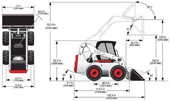 Высокоманевренность и габаритные размеры мини-погрузчика Bobcat-773 наилучшим образом подходят для работ на ограниченных площадках (строительных, производственных), на складах, также его можно использовать в узких коридорах.