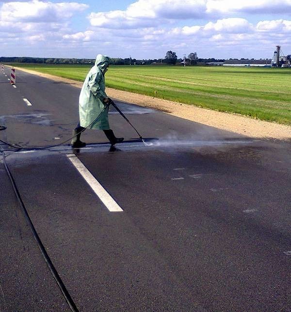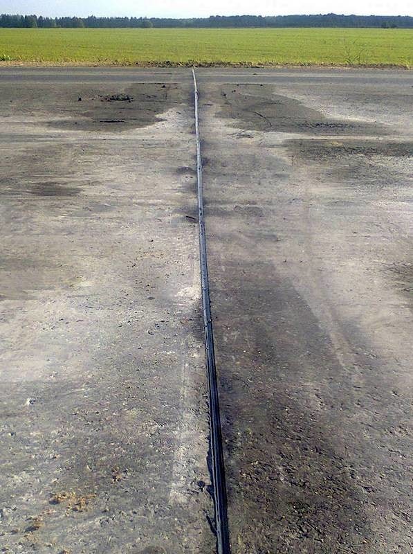 Задачей ЗАО «СП АЭРОДОРСТРОЙ» на объекте было устройство температурных швов, после устройства нового слоя, перекрывающего бетонную поверхность, из асфальтобетона.