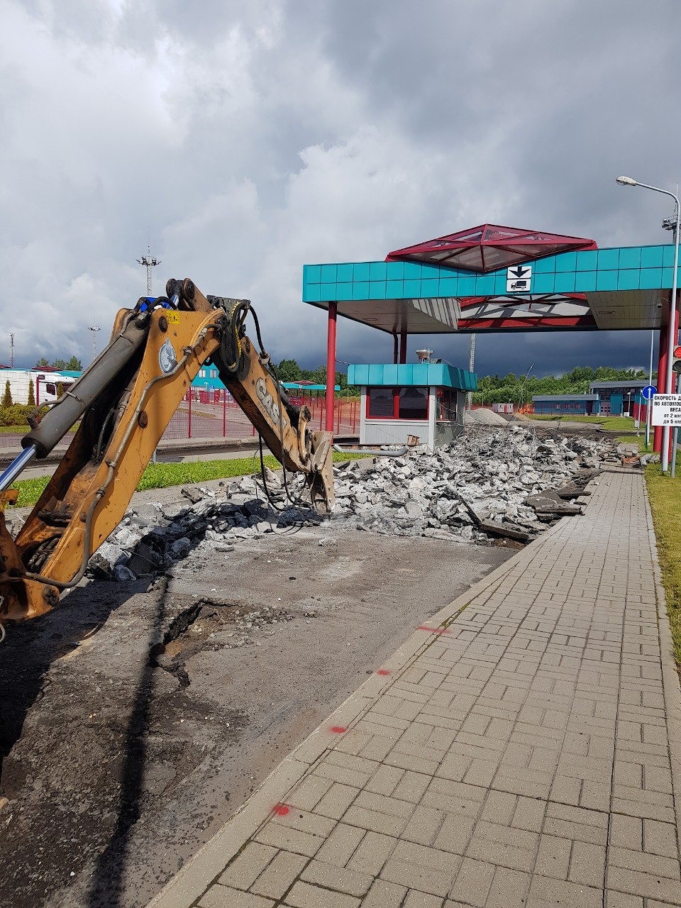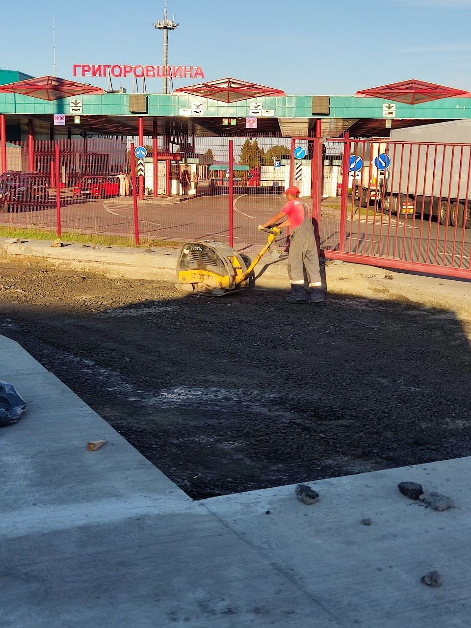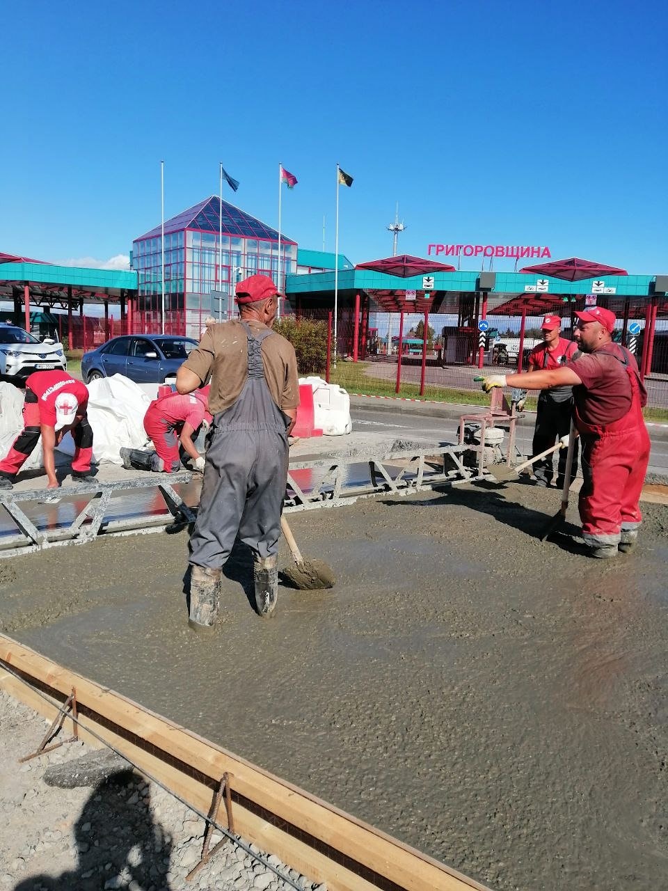 К началу работ была проведена большая работа по формированию бригады специалистов, укомплектованной специальным технологическим оборудованием, материалами, инструментом, инвентарём, транспортом, организации поставки необходимых материалов к месту производства работ, получению пропусков, согласованию схемы организации и ограждению мест производства работ, поиску субподрядных организаций . Бригада "СП АЭРОДОРСТРОЙ" из 20 человек приступила к выполнению работ на пункте пропуска Григоровщина ровно в назначенное время, определенное в графике производства работ. На погранпереходе было организовано реверсивное движение в целях обеспечения перемещения транспортных средств и сохранения пропускной способности таможенного терминала. Работы велись непрерывно, порой в 2 смены по 12 часов каждая, в течение всего времени производства работ.