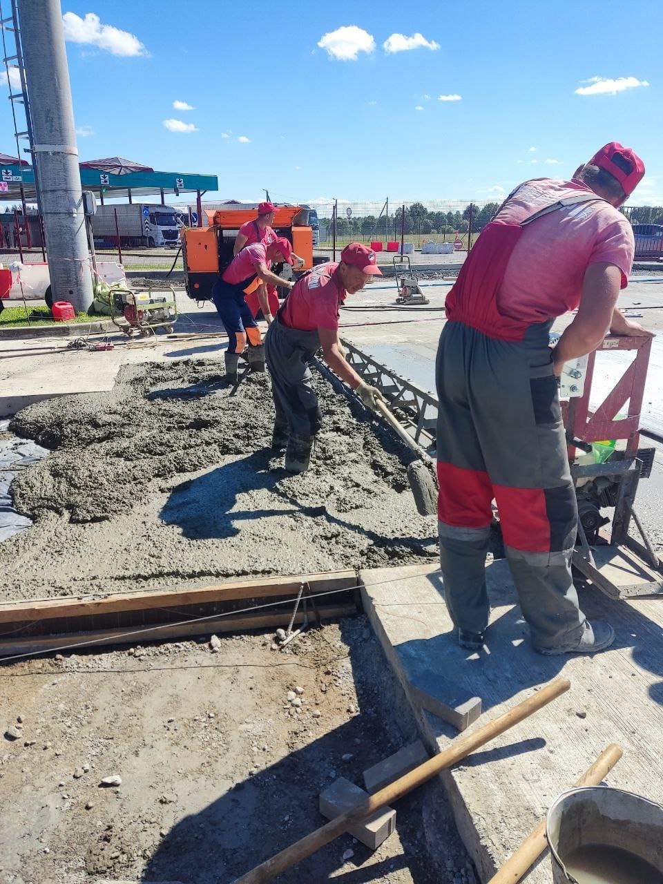 Помимо привычной для нас работы по возведению цементобетонных покрытий и швов на объекте был выполнен следующий комплекс работ по демонтажу/монтажу весогабаритного оборудования, устройству внутриплощадочных и внутренних электросетей, наружного освещения, монтажу силового электрооборудования. Была устроена горизонтальная дорожная разметка , а также установлено ограждение на объекте.