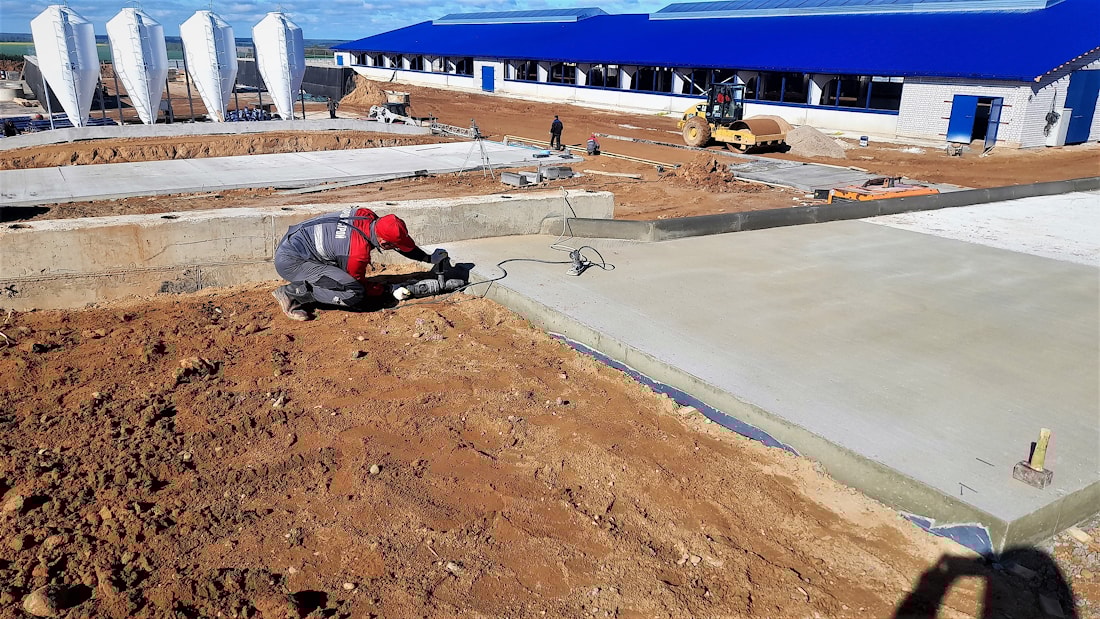 Завершающим этапом строительства бетонных покрытий является нарезка и герметизация деформационных швов . Вся необходимая техника для этого имеется в собственности нашей компании. Для укрепления поверхностного слоя бетона мы рекомендуем производить также гидрофобизацию уложенного покрытия. По желанию заказчика в коровниках наши специалисты готовы выполнить комплекс работ по нарезке швов-канавок (штроб) в бетонном покрытии. Нарезка таких швов является наиболее часто используемой техникой в мире молочного животноводства по созданию антискользящего покрытия, что в свою очередь позволяет сократить поскальзывание коров на более чем 95%, снижая тем самым травмоопасность. К тому же при ежедневной ходьбе по полу с нарезанными швами происходит быстрое стирание копытного рога, что позволяет избежать деформации копытных суставов и позволяет отсрочить профилактическую обрезку копыт.