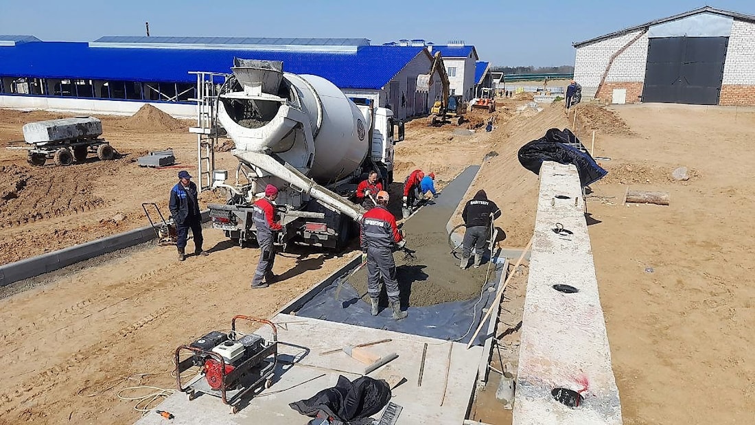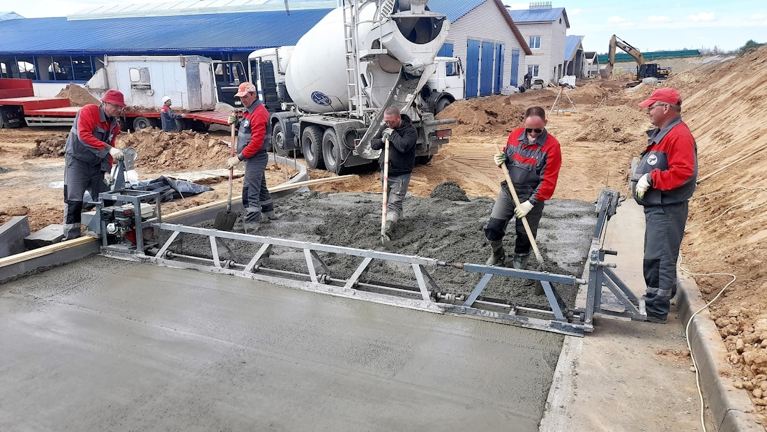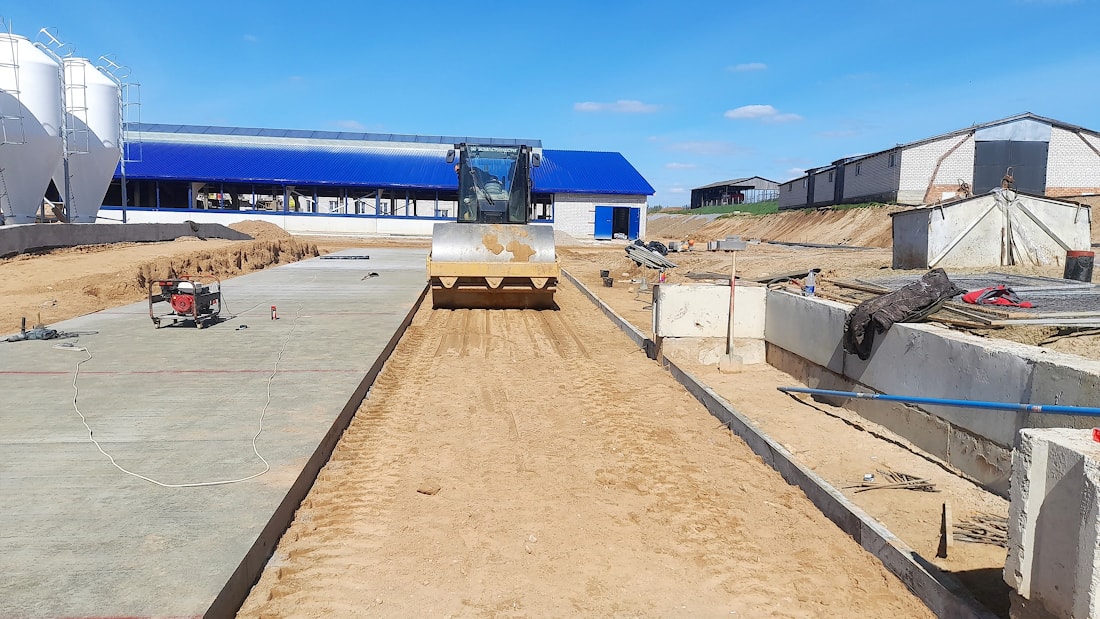 Компания "СП АЭРОДОРСТРОЙ" готова выступить в качестве подрядной организации по выполнению полного комплекса работ устройству цементобетонных покрытий и деформационных швов как снаружи, так и внутри зданий и сооружений при возведении фермерских комплексов. Технология строительства бетонных дорог, проездов и площадок на территории сельскохозяйственных комплексов аналогична строительству бетонных покрытий на промышленных предприятий. При больших объёмах и площадях укладки бетона мы используем гладковальцевые трубные укладчики и бетоноукладочные комплексы Gomaco и Guntert&Zimmerman . При устройстве монолитных бетонных покрытий в коровниках, навозных, кормовых проходах, доильных залах, помещениях для санитарной обработки коров и прочих помещениях мы применяем секционные виброрейки.